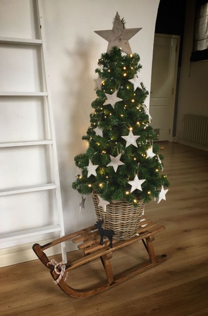 Velký strom se k vám nevejde? Nevadí! Pořiďte si menší živý a umístěte ho na vyvýšený povrch. Skvělé místo je například komoda, skříňka či odkládací stolek. Stromku dodáte optickou výšku, která zapůsobí elegantně a vkusně. Nezapomeňte zakrýt stojánek dekou či proutěným košem. Zdobte stromeček jemnými dřevěnými ozdobami pro jednoduchý a přirozený vzhled.